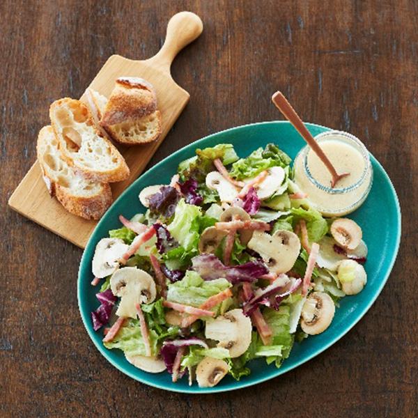 ベーコンの旨味とマッシュルームの風味を加え、定番のシーザーサラダにコクをプラスした一皿。夕食にもぴったりな、満足度の高いサラダです。