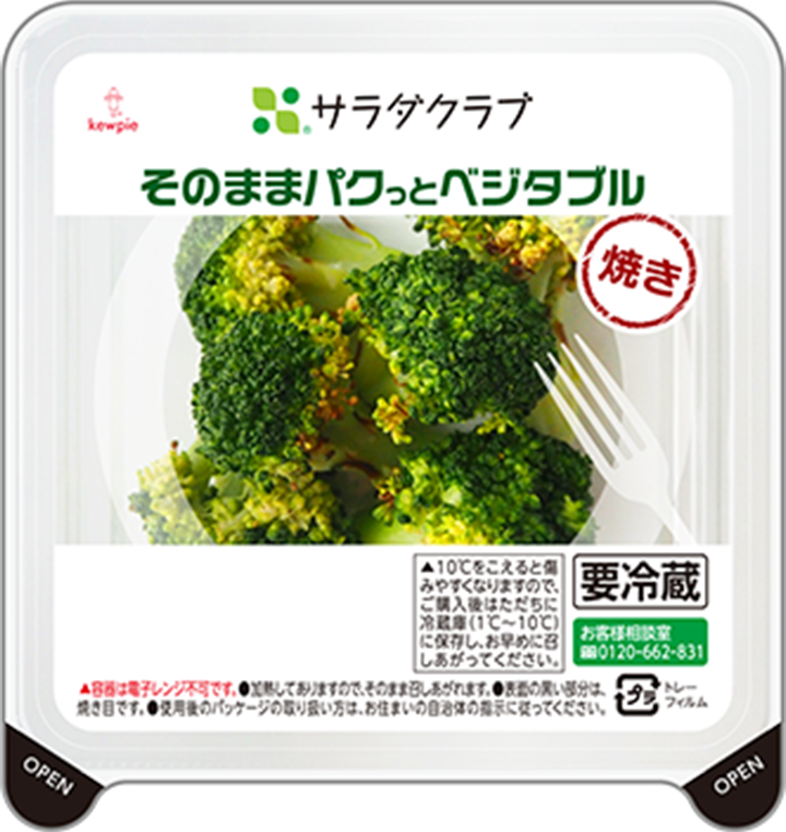 「そのままパクっとベジタブル」は、"野菜をもっと身近な食材に"という思いから生まれた新シリーズです。洗浄・カットに加え、「蒸し」「焼き」の加熱工程まですべて済ませており、開封後すぐに食べることができます。そのままはもちろん、サラダのトッピングや、夕食の副菜など、さまざまなシーンで手軽に使える汎用性が特長です。また、利便性と保存性が高いトップシール容器を初めて採用し、4日間の消費期限を実現しています。